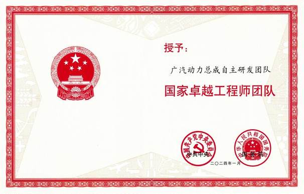 2024年1月,广汽动力总成自主研发团队荣获“国家卓越工程师团队”称号
