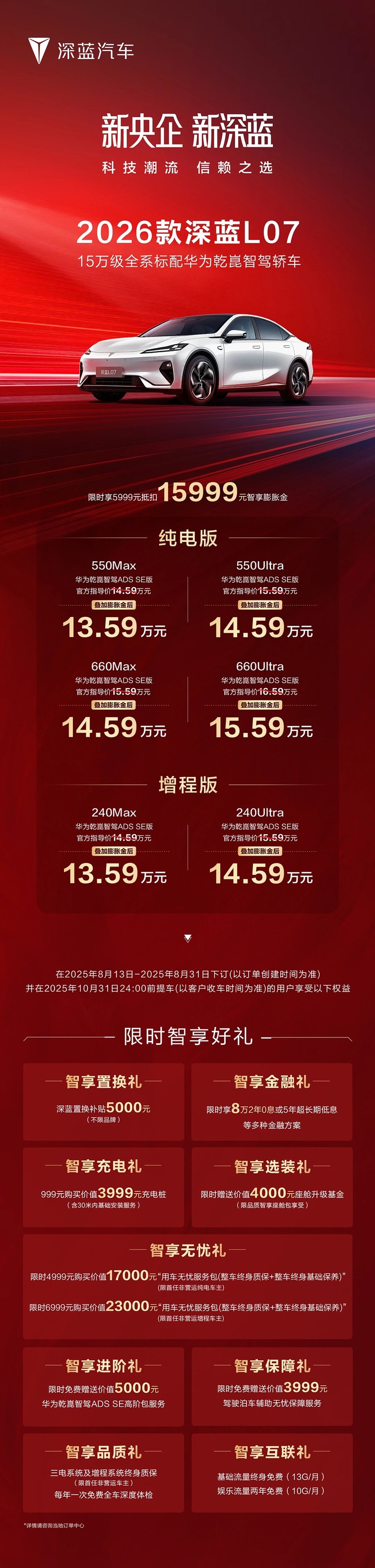 全系标配华为乾崑智驾 限时13.59万起 2026款深蓝L07焕新上市
