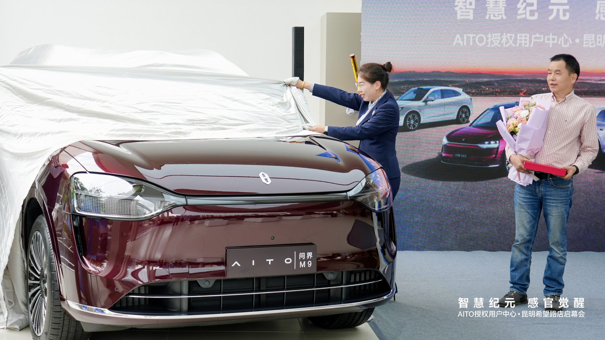 在启幕仪式上,AITO授权用户中心昆明希望路店也迎来了M9新成员车主,现场顺利地完成了新车交付仪式,也体现出了车主对问界M9的深深喜爱与信任。