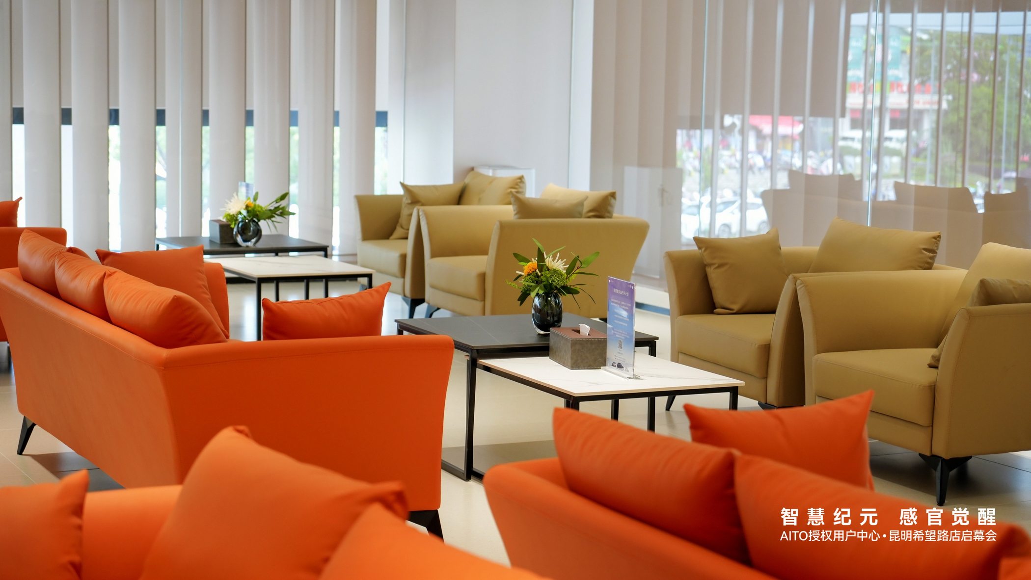 AITO授权用户中心昆明希望路店为客户提供了用心的服务体验,旨在为客户提供舒适、放松的环境,休息区配备了高档舒适的电动按摩沙发、茶几、柔软的靠垫等家具,以及适宜的灯光和空调设备,确保客户在休息时能够享受到最佳的舒适度。