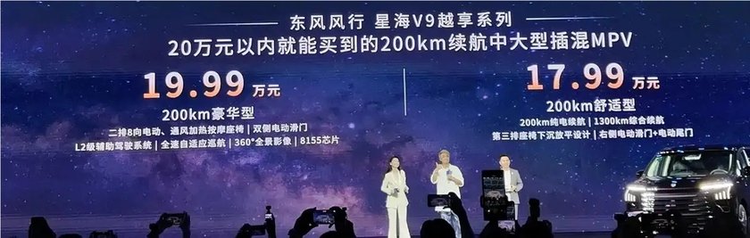 东风风行星海V9越享系列,这款基于东风风行25年MPV领域深耕经验及体系能力打造,兼具长续航、大空间、舒适驾乘、强安全和高品质优势的中大型插混MPV,也是20万内唯一中大型插混MPV,实现了“20万元内的价格,40万的豪华体验”,开启MPV豪华平权时代。