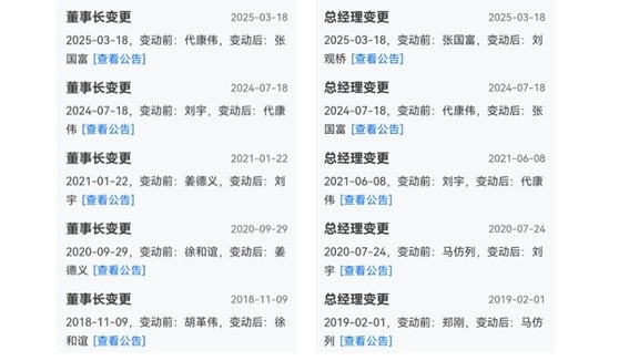 自北汽蓝谷2019年借壳上市至今,过去不到7年时间,董事长换了6任,总经理换了7任;其中,代康伟任期不到一年,最短的甚至只有4个月。这种频繁变动带来许多问题。