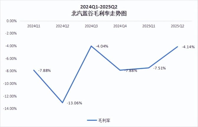 2025年上半年,北汽蓝谷实现营收95.16亿元人民币,同比增长达到154.38%;然而增收却不增利,上半年毛利率为-5.3%,归属上市公司股东净亏损则为23亿元,相比去年同期有小幅收窄。