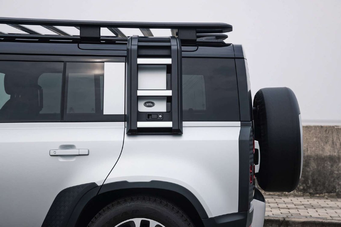 通过车顶的行李架和车侧面的小梯子,外加外挂式备胎和颜色撞色搭配,还是向我们宣告着我,卫士,还是那个卫士!