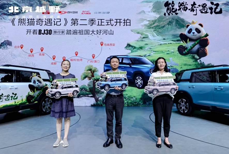 现场,北汽集团董事长张建勇、北京电视台总编辑徐滔与四川广播电视台总编辑王红芯共同官宣《熊猫奇遇记》第二季开机。 去年,北汽集团携手北京卫视、四川卫视,打造了大熊猫文化纪实节目《熊猫奇遇记》第一季,BJ40 以独家探险陪伴官身份全程护航。如今,三方再度携手开启《熊猫奇遇记》第二季,BJ30 旅行家将全程参与节目拍摄录制。