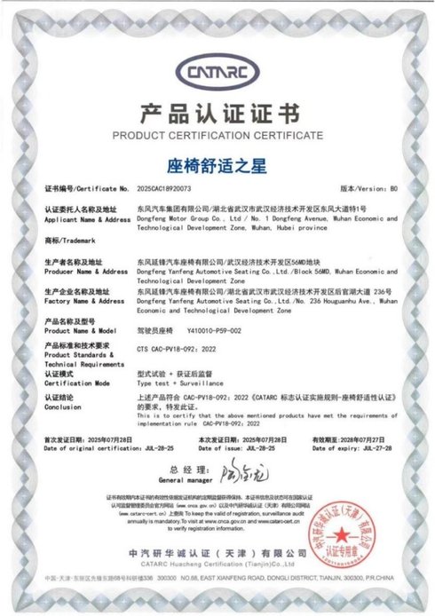 不是所有的座椅都叫大沙发。东风风神L8座椅采用75kg/m³发泡密度的填充材料,超过行业40%,不为高成本用料折腰, 为用户带来“带回弹的柔软”和“有包裹的支撑”。采用6大“舒适白科技”人体工学设计,家人久坐也不累。面料使用PVC婴儿级亲肤面料,容易打理又安心。为了保证舒适更耐久,云柔大沙发在出厂时,经历严格的检验关,通过仿生机器人,24小时连续两个月不间断的挤压,200万次不变形才算过关,一座用十年,久坐不塌陷。同时,东风风神L8还针对主驾量身定制了堪比头等舱的“专属舒适区”。座椅通风带来清爽、24种按摩模式缓解酸胀、小憩模式一键躺平、头枕音响打造专属声场。凭借硬核实力,东风风神L8一举拿下了中汽研“座椅舒适之星”认证。