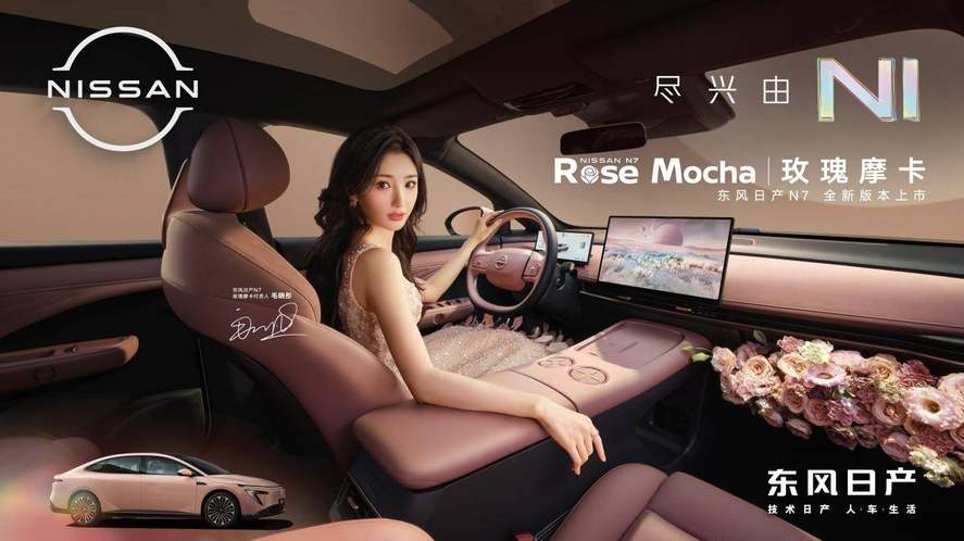 调研显示,N7车主中年轻用户占比59%,女性车主占比高达33%。正是年轻群体和女性用户对N7的青睐,当许多用户期待能拥有更具独特感与高级感的配色时,东风日产以此为灵感,打造出全新限定内饰“玫瑰摩卡”,并邀请知名演员毛晓彤参与新色构思与命名,担任东风日产N7玫瑰摩卡代言人,用她的美丽与飒爽为N7带来不一样的演绎,为N7车主解锁更多心动!