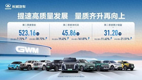 历史最佳8月销量 长城汽车8月销售新车11.56万辆,同比增长22.33%