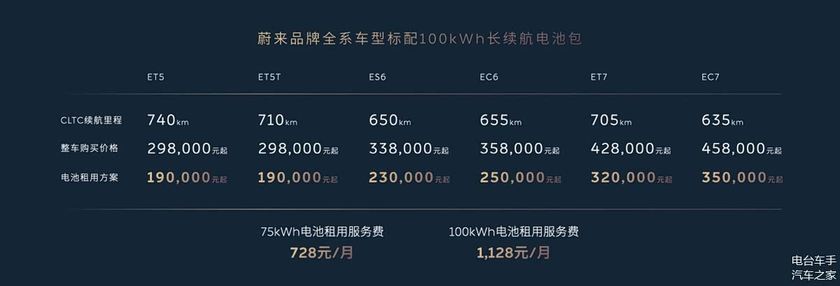 蔚来品牌全系车型续航升级,标配100kWh长续航电池包