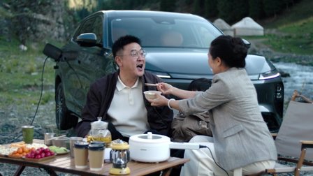 直到妻子带着孩子,驾驶东风风神 L8 穿越 2000 多公里,稳稳停在隧道入口这一刻,天山不再是阻隔,坚守也有了最温暖的注脚。在车里,难得的团聚时光被悄悄拉长:孩子贴着全景天窗仰望天山的蓝天,李亚隆在车机地图上画出一条连通南北疆的直线,给孩子讲述翻阅天山背后的故事;得益于 6.6KW 外放电功能,天山脚下很快飘起饺子香,一家人围坐分享团圆美味;孩子拉着他享受座椅按摩,说 “这是给爸爸的专属礼物”。