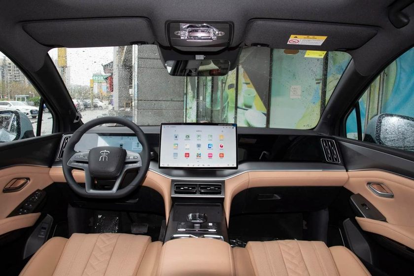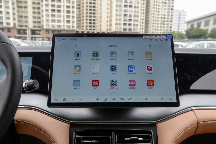 宋L DM-i的座舱要稍微复杂一点,看起来没有那么简洁,主要是因为它保留了实体按键,而且还有一个尺寸不小的电子挡把。个人觉得保留一部分实体按键还是有必要,毕竟不是哪个车主都喜欢用语音控车。另外它的用料也不错和做工也不错,黑色饰板和金属饰板的搭配相辅相成,质感同样比较高级。