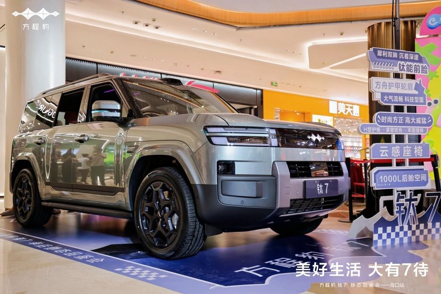2025 年 9 月 7 日,#方程豹钛7# 静态品鉴会在海口启幕。作为品牌首款承载式混动方盒子,这款定位 “科技大空间 SUV” 的车型,以 “路虎的面子、理想的里子、方程豹的乐子” 三重优势,为新潮酷爸群体打造兼顾个性与实用的座驾。