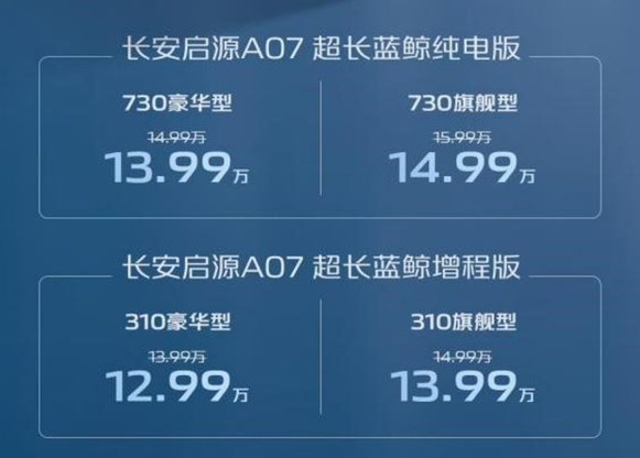 12.99万起,长安启源A07超长蓝鲸纯电版/增程版焕新上市