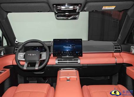 内饰方面,钛 7 使用阶梯式双层中控台设计,第二层具备开放式储物槽。从功能布局来看,钛 7 与在售方程豹旗下车型内饰风格相似,中控台由液晶仪表盘和多媒体显示屏两块屏幕组成,采用怀挡式设计,副仪表台区域可提供手机无线充电板和杯架等。