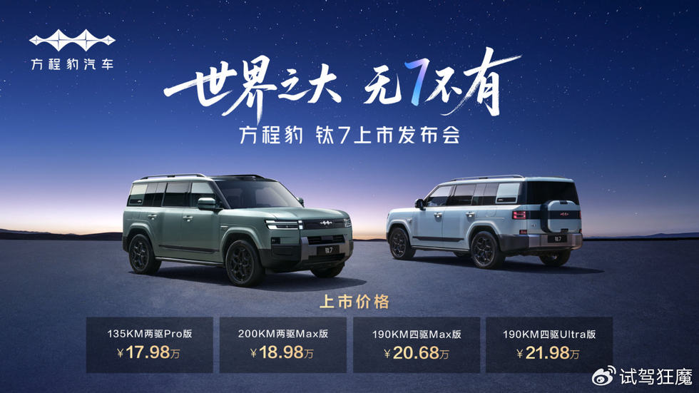 百变空间全新玩法,方程豹钛7火爆上市,售价17.98万元起