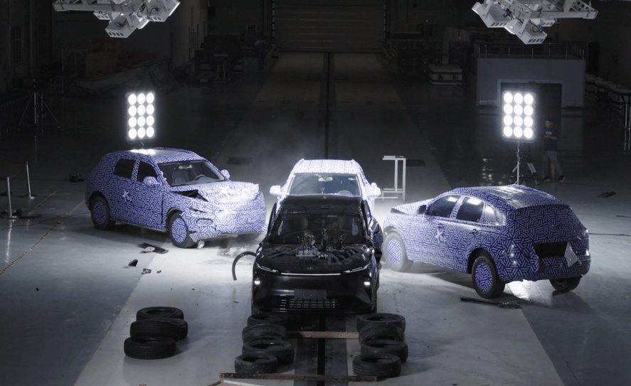当然,安全标准参数是一方面,实战测试则更能体验风神L8在整车安全上的造诣——在中汽中心行业首次真实场景三面连续碰撞测试中,风神L8模拟远超常规安全测试的十字路口发生的交通意外,整车接连遭受正面+侧面+追尾三台时速55km的子弹车的连续撞击。而结果也极具参考意义,A/B/C/D柱结构未失效,乘员舱保持完整、气囊正常弹开、电池包无起火无冒烟、车门正常开启,各项数据均达标,更是获得中汽中心“TOP Safety 2025安全性能类挑战证书”。
