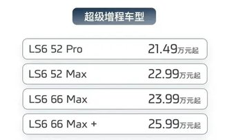 8月15日,全新一代智己LS6开启了预售,预售权益价区间为20.99—27.99万元。与前款车型最直观的不同是,全新智己LS6新增了4款增程式动力车型,预售权益价区间为21.49—25.99万元。
