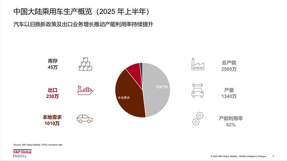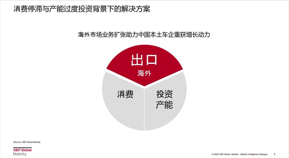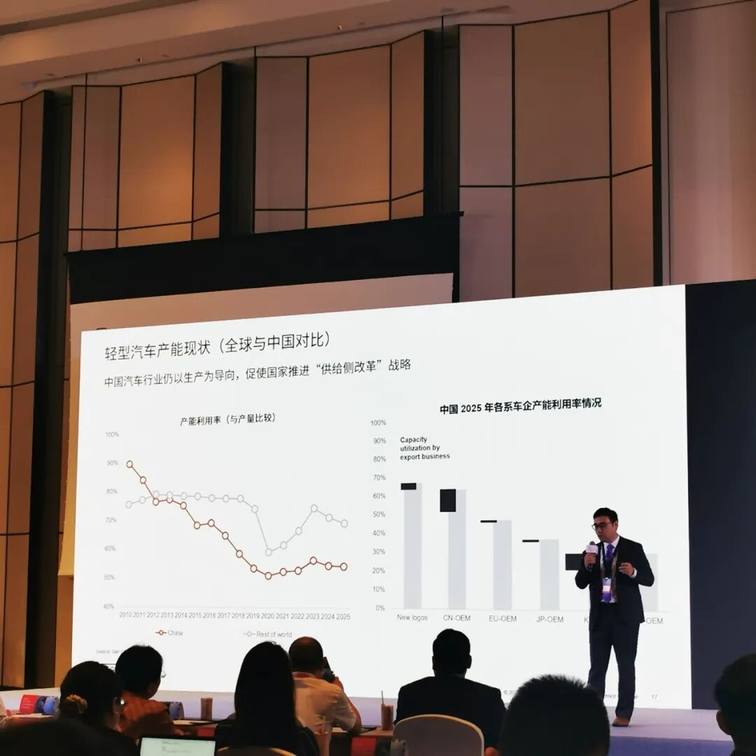 陶杲介绍,2025年上半年,中国汽车市场仍是产大于销,新增库存达50万辆,根据标普全球汽车的统计,2025年整个中国车企产能利用率仅50%左右,当本地的需求量不足,就要依赖出口。目前依赖出口保持增长的趋势不可持续,中国企业应到海外市场扎根生产,带动当地产业链,以保证整体中国企业顺利出海。