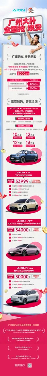 广州发钱了!购车补贴9月15日启动,埃安推出加码福利