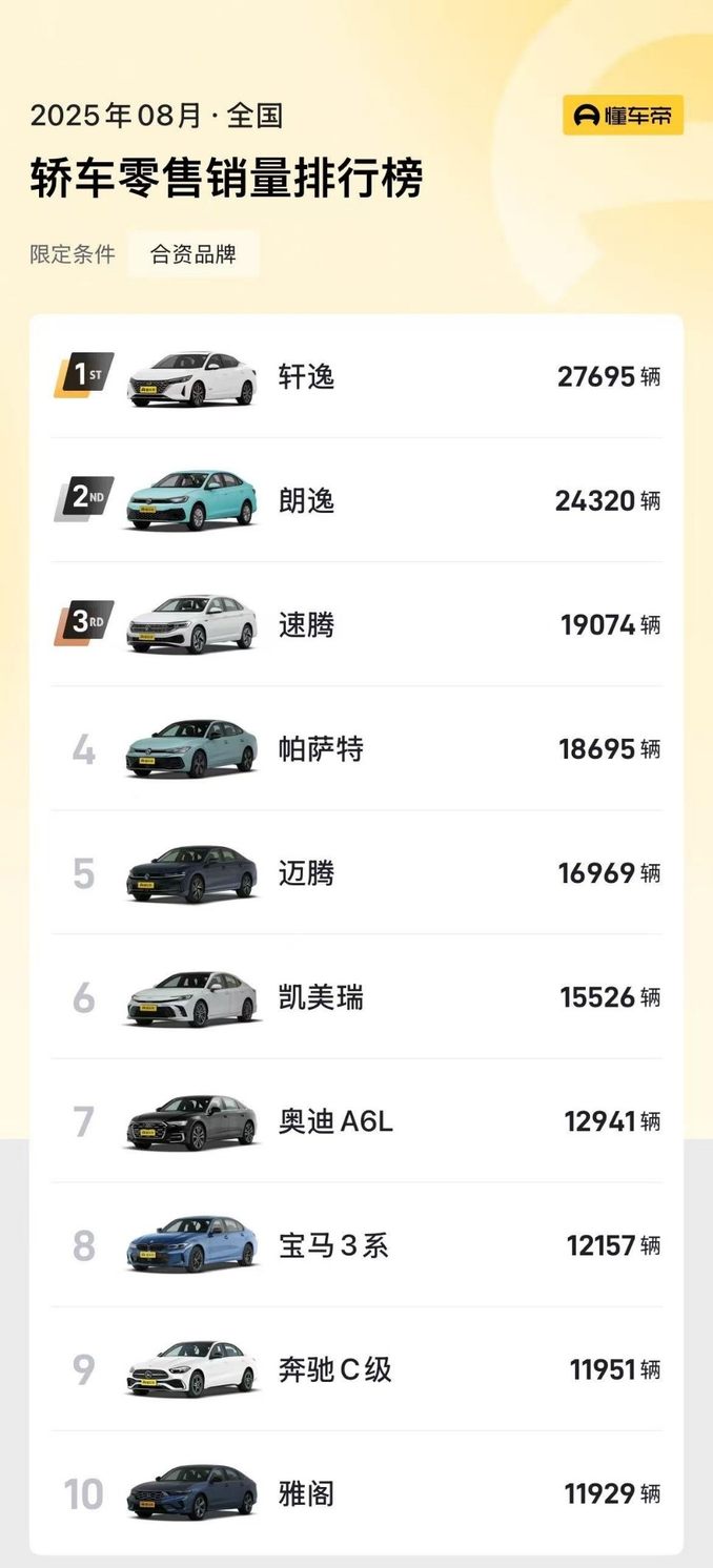 燃油车市场的“大众韧性”: 上汽大众 8 月狂销 8.54 万辆