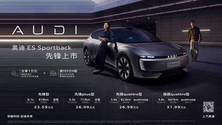 2025年9月16日,广州 – 奥迪 E5 Sportback正式上市,全系推出先锋型、先锋plus型、先锋quattro型和旗舰quattro型共4款配置车型,臻享价23.59万起,并享万元保险现金权益,意味着E5 Sportback正式进入22万级区间,上市即开启交付。