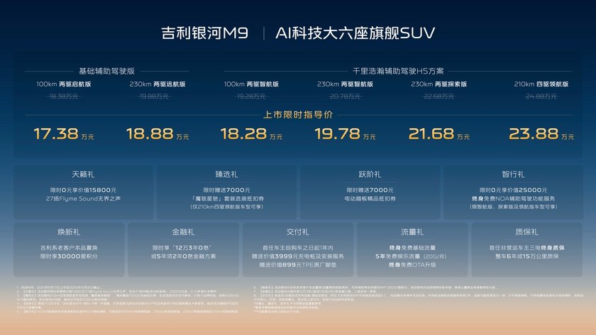 全域AI智能SUV 吉利银河M9正式上市 限时17.38万起售
