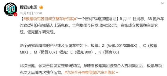 此次极氪、领克各自设立整车研究院,意味着极氪集团被整合入吉利集团后,极氪与领克两大品牌再次独立运营。