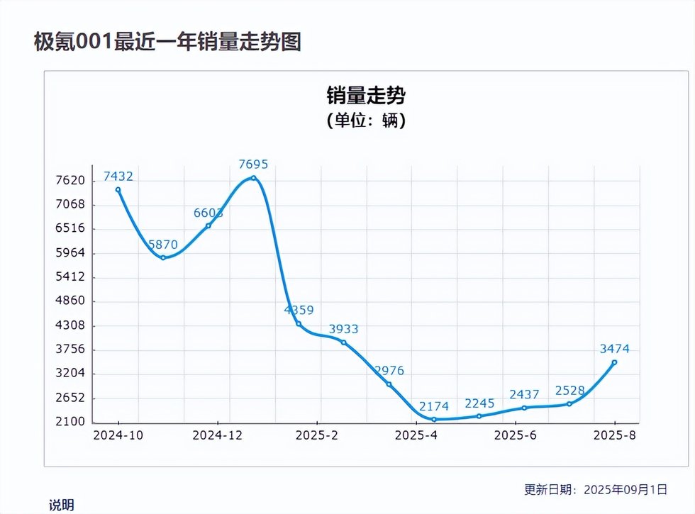然而,极氪001的销量在今年出现了“断崖式”下跌。