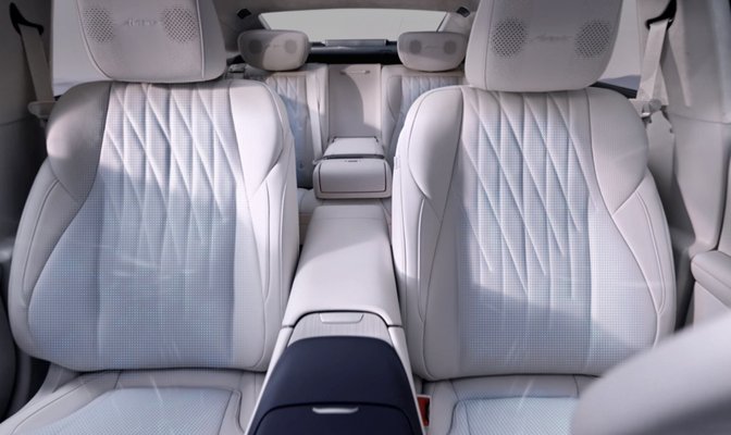 座椅绝对是"移动的头等舱"。同级唯一的四座全功能悬浮层座椅,用的是无修全粒面Nappa高级真皮,触感堪比豪华沙发;副驾的双120°零重力座椅太惊艳了,配合可伸长103mm的4向电动腿托,开启一键小憩模式后,长途坐车的疲惫感瞬间消散。