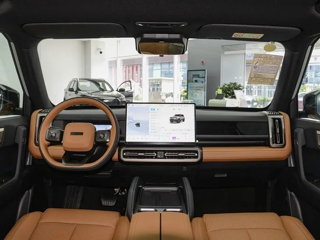 车内风格也是延续了家族的统一设计,以平直线条为主,相对简约,不过层次感十足。全系标配15.6英寸的中控屏,搭载车规级的8155芯片。中控台下方的把手增加了越野氛围,扶手箱改成了对开的方式,对副驾乘客更加友好。配置方面,前排隔音玻璃、6安全气囊、540度全景影像(透明底盘)、双温区自动空调、前排电动座椅这些都是全系标配,另外中高配车型上还有方向盘加热和前排座椅的加热、通风功能以及哨兵模式等配置。
