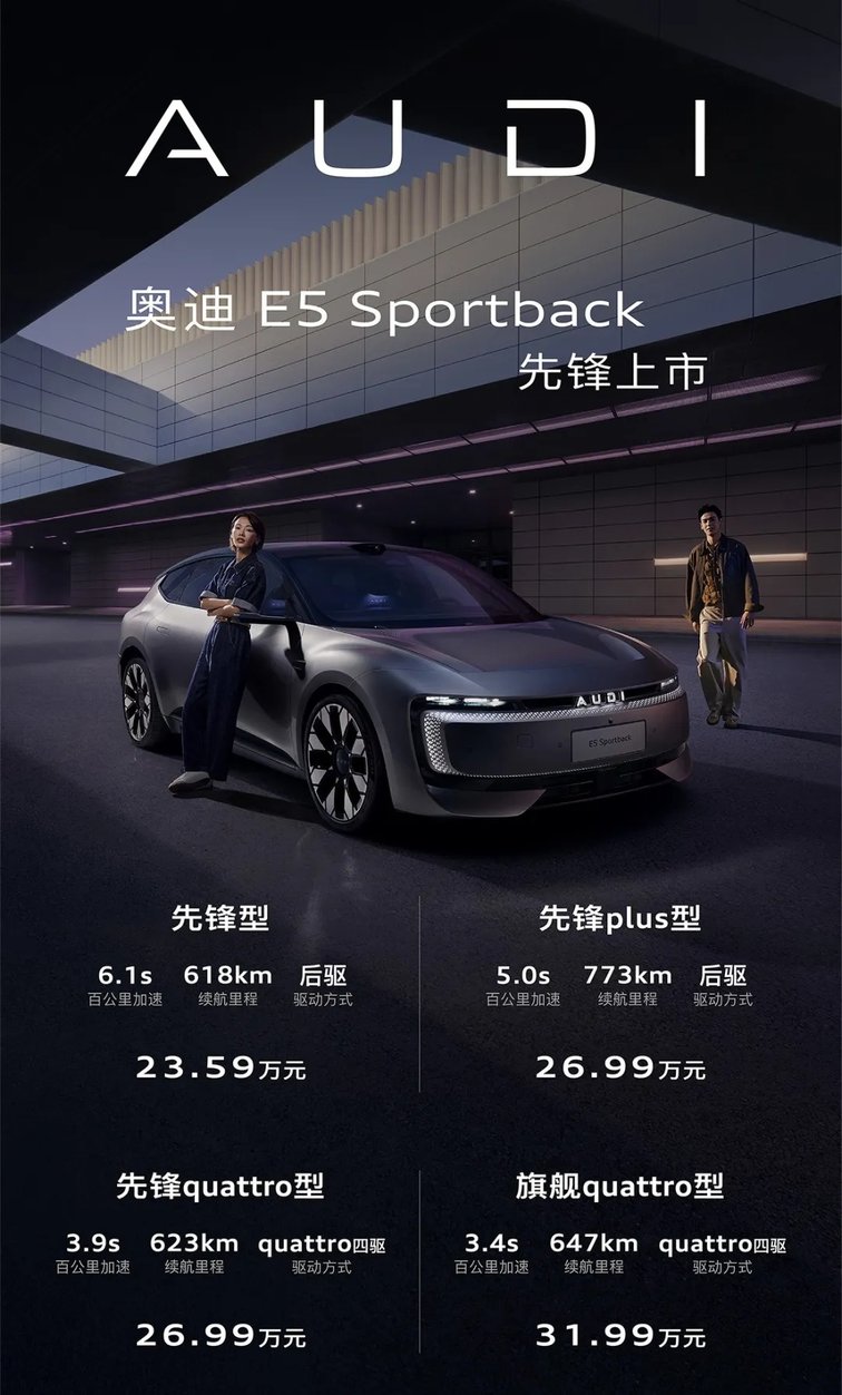 奥迪E5 Sportback上市,售价23.59-31.99万元