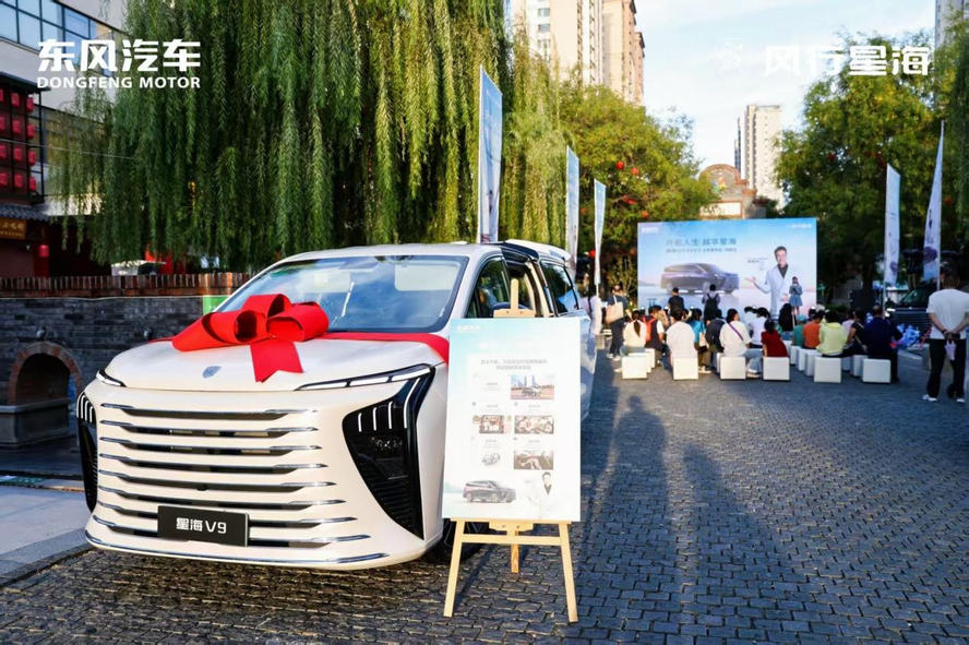 在热烈的掌声中,活动迎来了最激动人心的时刻——交车仪式。来自济南、滨州、聊城、菏泽、济宁、淄博、潍坊七大城市的14组首批星海V9越享版车主代表,共同登上舞台。东风风行的领导代表为车主们郑重递上鲜花与象征新征程的车钥匙,现场氛围热烈而温馨。值得一提的是,为表达对首批车主的真挚心意,品牌特别准备了豪华全套露营装备交车礼——包括帐篷、天幕、户外餐桌椅等齐全配置。这不仅是一份礼品,更是一种全新的生活方式提案。