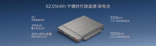 增程版车型全系可选装宁德时代52度大电池包,CLTC纯电续航里程达到333km,综合续航高达1200km。这意味着你可以把它当作纯电车来使用,大大降低了充电频率。而且,该电池支持5C超充,电量从30%充至80%仅需10分钟,充电速度看齐主流纯电车型。你喝杯咖啡的时间,车就充满了电,可以继续上路了。纯电版基于全域800伏高压碳化硅平台打造,动力强劲,续航表现也很不错。