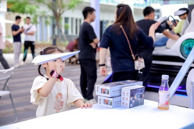 活动伊始,灵感市集俨然成为创意与乐趣的交汇点。纸飞机挑战赛唤醒童年记忆,VR赛车引来阵阵欢呼,微景观DIY区则让每位参与者化身创意设计师,亲手构筑心中的理想生态。这些互动体验不仅拉近了科技与生活的距离,更让用户在轻松氛围中感知深蓝“科技,服务于人”的温暖内核。