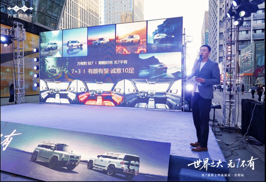 现场,方程豹汽车 孙东来 先生围绕“颜值、空间、操控、智能、安全”等多维度为现场嘉宾进行了细致解读,让大家直观感知钛7的极致产品力。随后,媒体代表 沈阳网 梁新哲、汽车品牌网 王新生 上台分享,作为资深汽车媒体人,他从专业视角分享到:对于追求品质生活与家庭需求的用户来说,钛7以全方位的优势碾压同级,是真正的大五座SUV天花板。