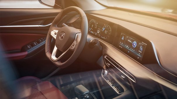 双10.25寸中控屏的防止有点类似于包裹式的感觉,整体设计主旋律除了科技感,同时还有简约风格,在屏幕为主的车内氛围中,保留少量的物理按键,让这台车不失去实用的感受。