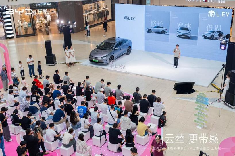 在此背景下,"有云辇 更带感——比亚迪秦L EV上新发布会"在上海仲盛世界商城热烈启幕,让到场的嘉宾和消费者通过亲身感受技术与生活美学的完美融合,充分展现了比亚迪的品牌文化和产品魅力。