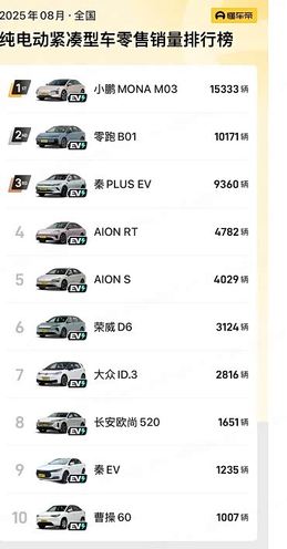 一:销量印证实力:“新秀”零跑B01“反超”小鹏MONA M03、秦PLUS EV