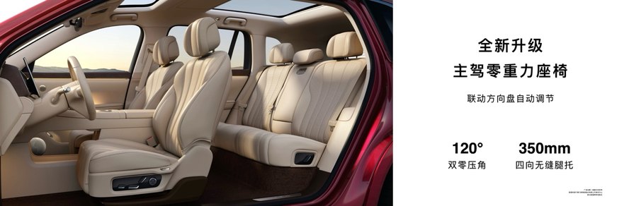 内饰采用对称式布局设计,配备16.1英寸3K悬浮中控屏搭配26英寸WHUD,更有68英寸AR-HUD,行车信息一目了然。副驾升级10.25英寸娱乐屏,并新增17.3英寸后排娱乐屏,新增组队出行与开门守卫功能,全家出行途中共享欢乐时光。