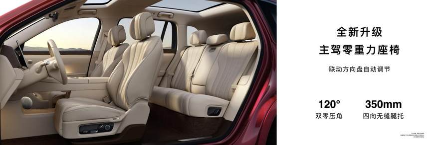 享六座,快乐满分。二排配备零重力座椅,120°双零压角搭配水平自适应扶手,隐藏杯架、66W快充与手机位俱全。三排腿部空间达810mm,头部937mm,宽敞不将就。