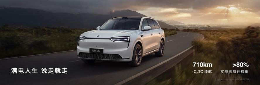 全新问界M7纯电版搭载华为DriveONE高压碳化硅七合一电驱,峰值扭矩4000N·m,最高转速22000rpm的超强性能,CLTC效率92.2%。全系标配华为巨鲸800V高压电池平台与100度容量电池包,纯电长续航版CLTC工况续航710km,实测续航达成率超80%,充电15分钟即可从30%补电至80%。此外,接入了覆盖全国350多个城市、超过140万根合作充电桩的补能网络,平均10分钟可达充电站,7×24小时应急充电服务,让远行不再担心。