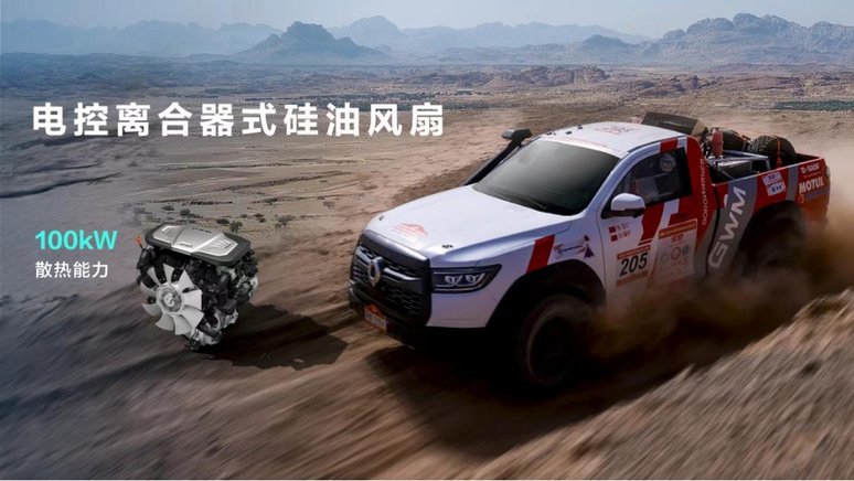 V6火炮还拥有一颗强大的心脏。纯血V6 3.0T大排动力,最大净功率达260kW,峰值扭矩500N·m,实现“大马拉小车”效果,沙漠穿越,人车合一,动力随踩随有!同时匹配48V电机,实现了动力性、燃油经济性的平衡,一脚油门,肾上腺素狂飙。此外,新车匹配电控离合式硅油风扇,散热性能大幅提升,可实现100kW的最大散热能力,稳定性好、可靠耐用,完美满足极限玩沙,高强度赛事,大角度爬坡等硬核越野需求。