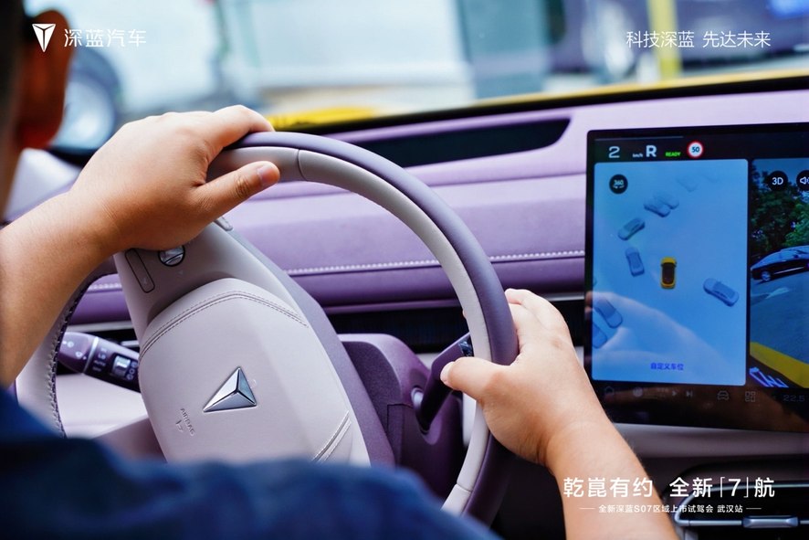 活动伊始,一场针对全新深蓝 S07 的全路况专业评测在活动周边区域展开,此次评测精心规划路线,全面覆盖了武汉周边的风景路、城市主干道、拥堵路段、快速路及颠簸路等典型路况,旨在让嘉宾全方位、深层次感知全新深蓝 S07 的产品实力。除了动态驾乘考验外,现场还特别设置了全新深蓝 S07的泊车体验, 作为全系标配华为乾崑智驾的科技智能中型 SUV,全新深蓝 S07 堪称智能驾驶领域的同级标杆。