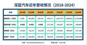 长安汽车披露的财报显示,2024 年,深蓝汽车全年实现营业收入 372.25 亿元,同比增长 43.8%,但营业利润与净利润分别为-15.89 亿元和-15.72 亿元。算上2023 年亏损 29.99 亿元,两年来深蓝汽车亏损额已经达到45.7亿元。
