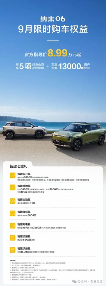 同时,为了更好服务年轻,纳米06在价格上也做进一步下探,让每一个刚走出校门年轻人都能够到着,去从容地生活,在9月份更是推出了新的购车权益。