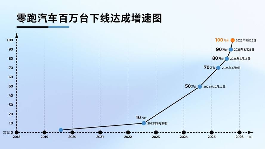 2025年9月25日,零跑汽车正式宣布第100万台整车下线,标志着其成为中国第二家迈入“百万俱乐部”的新势力造车企业。这一历史性时刻,不仅是一个产量数字的突破,更是对零跑“稳中求进、厚积薄发”发展路径的最佳印证,被业界广泛关注的“零跑现象”由此迎来全新高度。