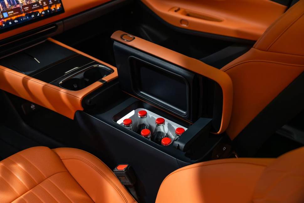 全新领克08 EM-P在中控扶手处提供了7L双开门冷暖控温冰箱,制冷速度同级最快,10分钟左右,从24℃降温至-6℃,保温范围35℃-50℃,并支持多种快捷预设场景模式,可通过车机和手机APP控温。无论是成人的冰饮料,还是为宝宝温奶,全家人的温度需求都能被精准满足。二排还配备了可承重15kg的小桌板,满足用户移动办公、儿童用餐,桌游等多种出行场景需求。