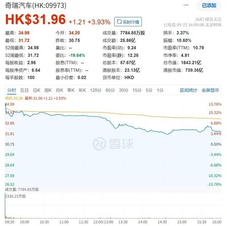 9月25日,奇瑞汽车(股票代码:9973.HK)正式于港交所主板挂牌上市。上市首日股价呈高开低走态势,最终收涨3.93%,为其资本市场征程拉开序幕。