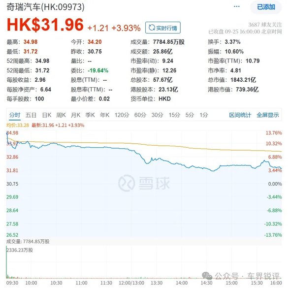中国最后一家未上市的车企巨头奇瑞汽车,9月25日在港交所敲钟了,市值一度飙升到2000亿港币。