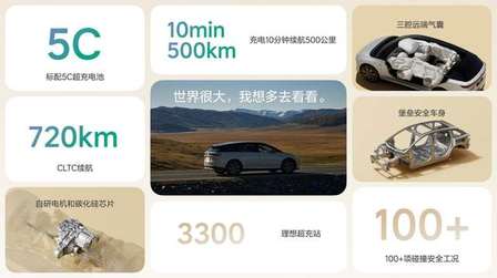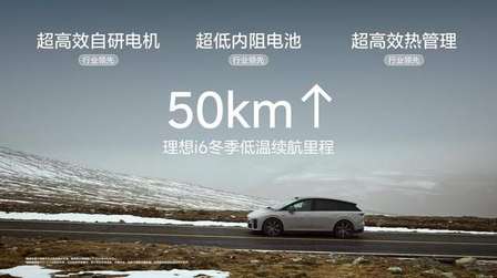 理想i6全系标配87.3度全新5C磷酸铁锂电池,CLTC续航里程最高可达720公里,具备超级续航、超级充电、超级放电、超级耐久、超级安全五大亮点。理想i6搭载理想汽车自研的碳化硅电驱系统,系统采用汽车行业首个正六边形元胞结构的自研碳化硅芯片,电机综合效率达到行业领先的93.08%,提升超30公里续航,百公里网端能耗低至13.6千瓦时。凭借超高效自研电机、超低内阻电池和超高效热管理,理想i6低温续航提升50公里以上,-7℃低温工况下续航达成率高达70%,在高速、城市及低温等多种场景下均能表现出同级领先的续航水平。